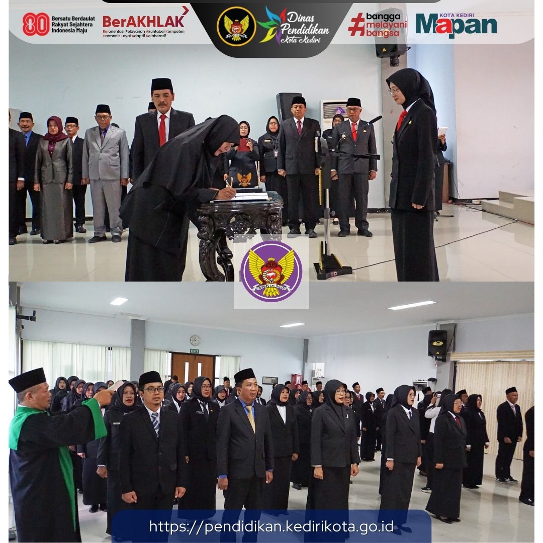 61 Kepala TK, SD, Dan SMP Negeri Kota Kediri Resmi Dikukuhkan, Walikota Tekankan Kepemimpinan Humanis Dan Adaptif Di Era Digital
