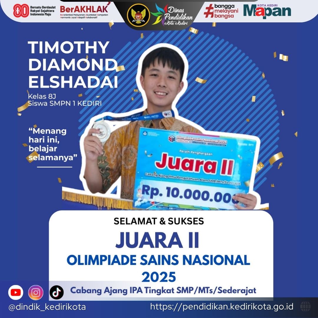 Siswa SMPN 1 Kota Kediri Raih Juara 2 Olimpiade Sains Nasional 2025 Cabang Ilmu Pengetahuan Alam (IPA)